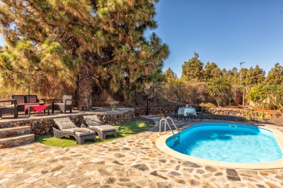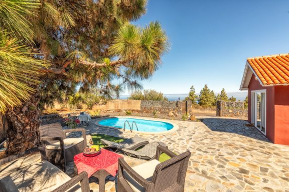 Es liegt in einer sehr ruhigen, kiefernbewachsenen Umgebung. Über diese typisch kanarischen Pinien haben Sie einen herrlichen Ausblick auf den Atlantk. Die Wanderwege beginnen direkt am Haus und zum Meerzugang mit Bademöglichkeit sind es nur 7km. Der Ortskern mit vielen Einkaufsmöglichkeiten, Bio-Läden, wöchentlichem Bauernmarkt und vielseitiger Gastronomie liegt ca. 2 km entfernt.